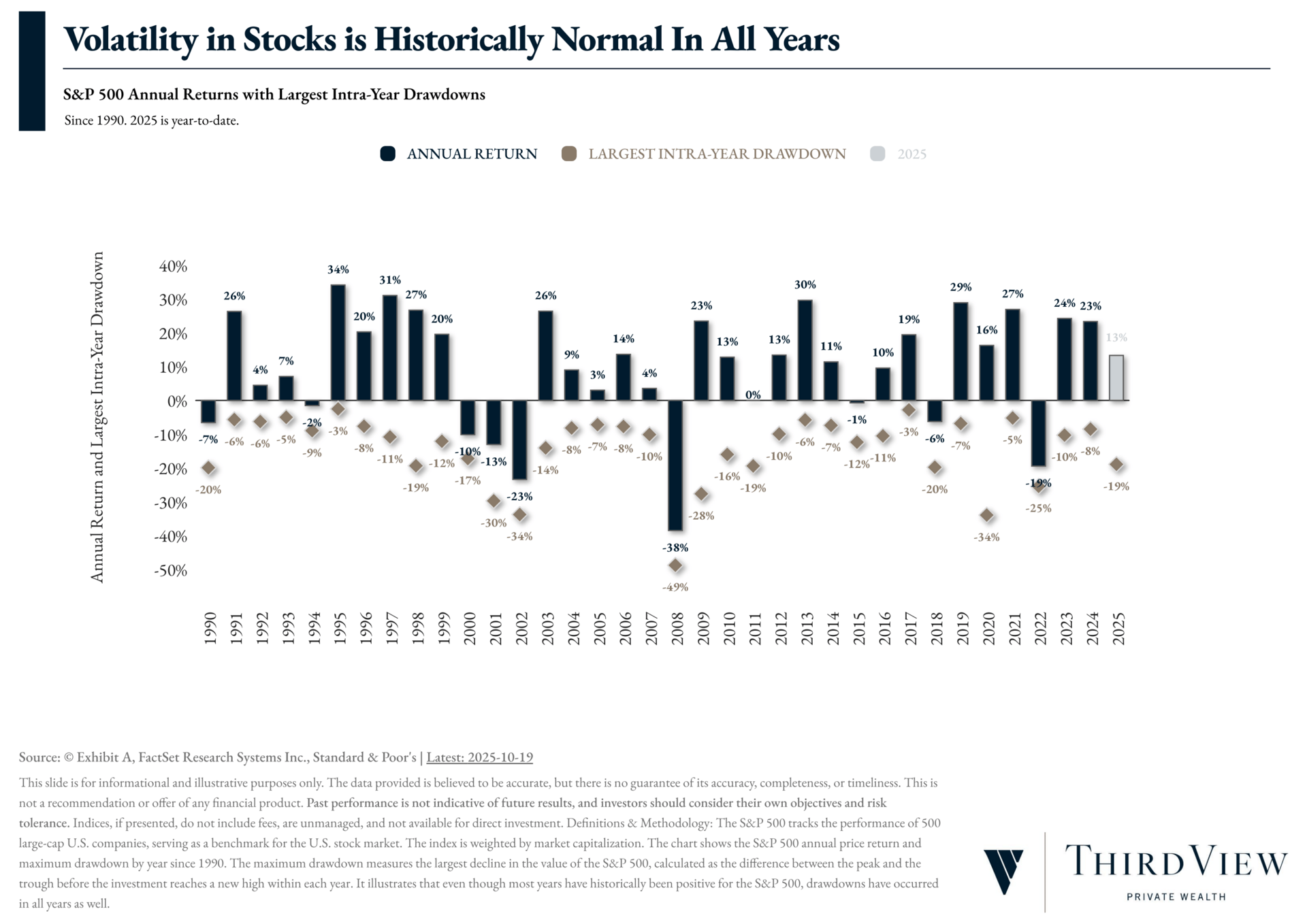 The more likely outcome is periods of increased volatility surrounding certain sectors of the economy, which will lead to a repricing of excesses, rather than an abrupt collapse. And as a reminder, volatility in stocks is historically normal every year.